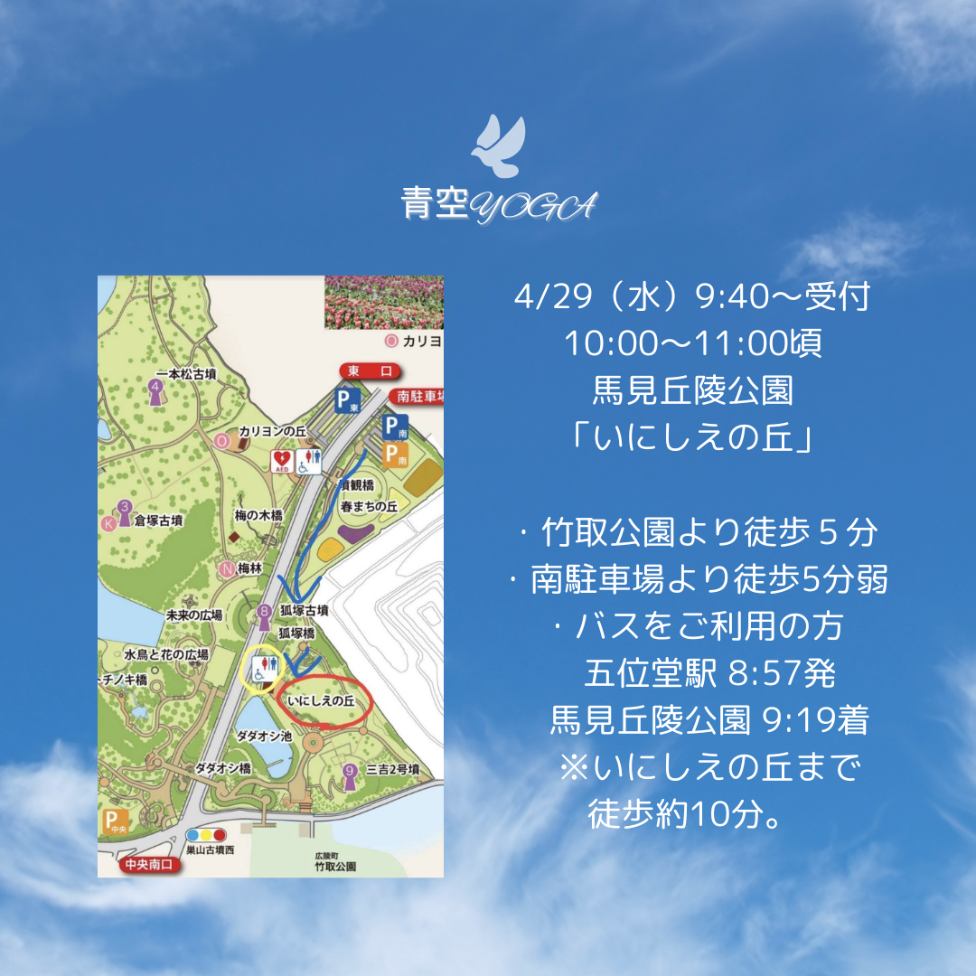 馬見丘陵公園は、四季の花々がとっても素敵です。ヨガの後もピクニックして帰ってください🎵